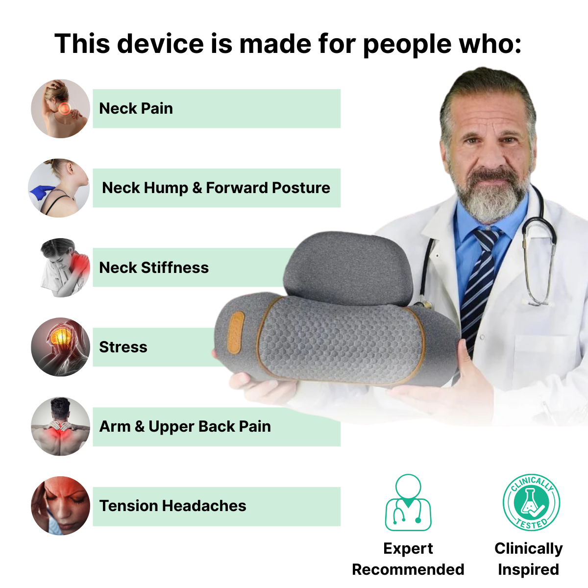 Eases neck tension, headaches, jaw tightness, and tech-neck symptoms